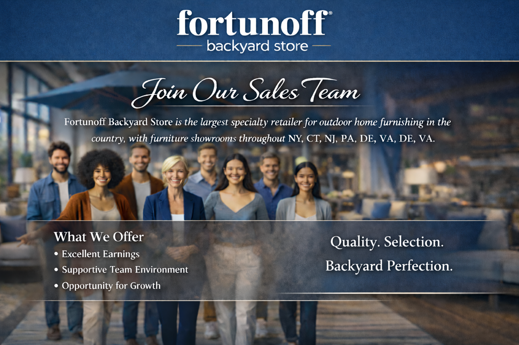 Did you know that Fortunoff Backyard Store is the nation's largest specialty retailer of outdoor home furnishings? We have furniture showrooms throughout NY, CT, NJ, PA, DE, VA and still growing! With over 100 years of history—we’re thriving! Be a part of a team where growth and opportunity and making great money all year round are always in season! Live your best with FBYS as we continue to flourish, innovate, and set the standard in outdoor living!